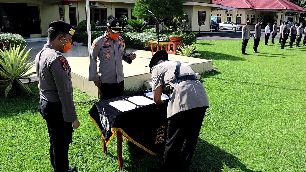 Sertijab Kasat Lantas Polres Muaro Jambi dilaksanakan berdasarkan surat telegram Kapolda Jambi Nomor ST/674/IV/Kep/2020. Surat telegram tersebut diterbitkan pada tanggal 29 April 2020.