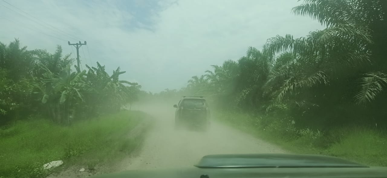 Kondisi jalan banyak lubang dan juga berdebu membuat jadwal silaturrahmi Haris dengan warga jadi molor.