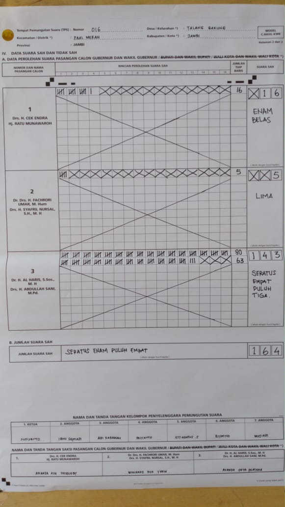 Jambipers.com, Jambi – Tak hanya calon kuat gubernur Jambi, Al Haris yang menang telak di TPS sendiri. Pasangannya Abdullah Sani juga menang telak di TPS sendiri.