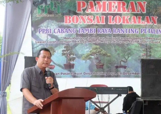 Jambipers.com, Muaro Jambi – Wakil Bupati Muaro Jambi Bambang Bayu Suseno, SP, MM, M.Si, hadiri undangan untuk membuka pameran dan kontes bonsai lokalan. Kegiatan ini dilaksanakan di Halaman Pasar Rakyat Desa Petaling Jaya, Kecamatan Sungai Gelam, Sabtu (02/01/2021).