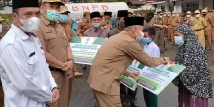 “Alhamdulillah hari ini saya bersama Sekda Kerinci dan seluruh camat serta Kemenag Kabupaten Kerinci dalam apel kerja Pejabat Eselon II, III, IV menyerahkan dan menyalurkan zakat, infaq dan sedekah ke dalam sektor-sektor produktif untuk kaum dhuafa, yatim piatu, gharim masjid/Marbot. Dana tersebut bersumber dari dana zakat, infak, sadaqoh, ASN Kabupaten Kerinci dan ASN Kemenag Kerinci,” kata Bupati Kerinci, Adirozal.