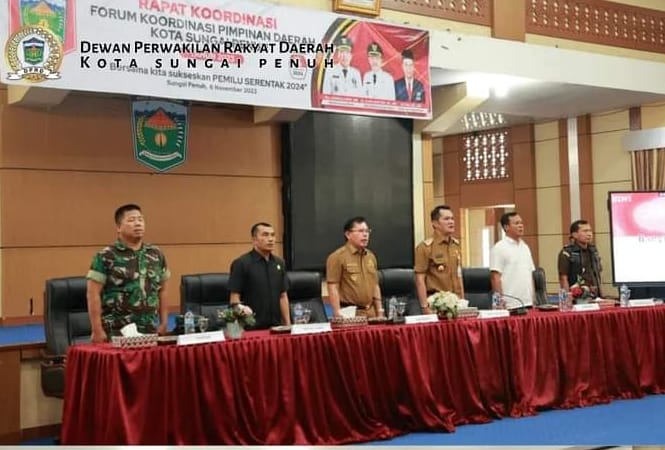 Jambipers.com, Sungai Penuh – Ketua DPRD Sungai Penuh, Lendra Wijaya,S.E., menghadiri Rapat Koordinasi (Rakor) Forum Koordinasi Pimpinan Daerah (Forkopimda) Kota Sungai Penuh dalam rangka kesiapan pelaksanaan tahapan Pemilu serentak Tahun 2024 di Kota Sungai Penuh. Acara Rakor dilaksanakan di Ruang Aula Kantor Wali Kota Sungai Penuh, Senin (6/11/2023).