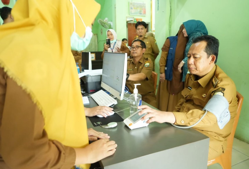 “Saya tadi tes pemeriksaan kesehatan mulai dari tensi, gula darah hingga kolesterol. Saya mengajak seluruh masyarakat untuk memanfaatkan program ini pada momen hari ulang tahun sebagai deteksi dini,” ujar Bupati.