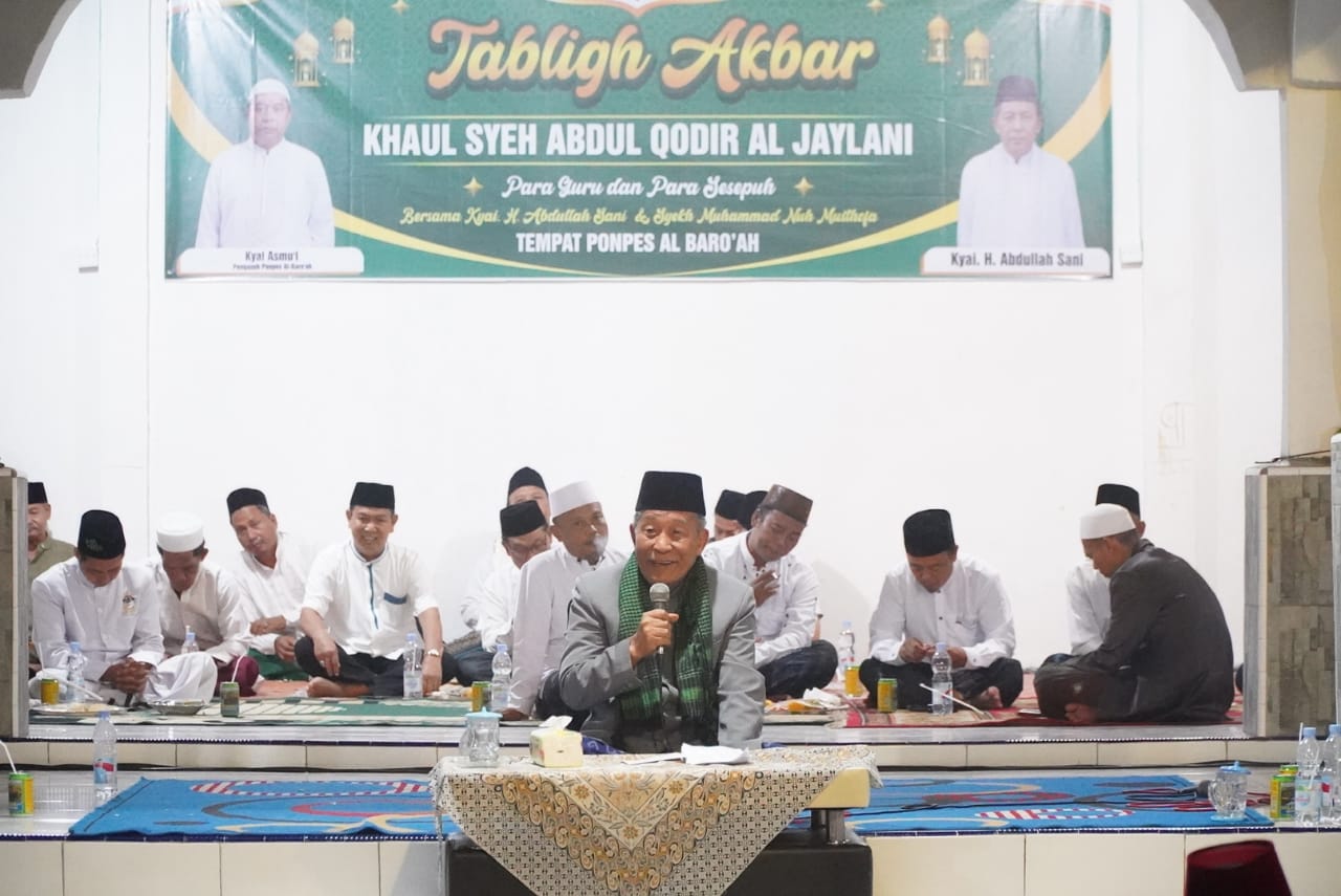 Jambi, Jambipers. com – Wakil Gubernur Jambi, Drs. H. Abdullah Sani, M.Pd.I, menyampaikan bahwa pelaksanaan Haul Syekh Abdul Qadir Al-Jailani bukan sekadar kegiatan seremonial keagamaan, tetapi memiliki makna spiritual yang mendalam bagi umat Islam. Haul menjadi momentum untuk mempererat tali silaturahmi, menumbuhkan kecintaan kepada para nabi, serta memperkuat hubungan dengan Allah SWT melalui amalan dan doa bersama. Hal tersebut disampaikan Wagub Sani dalam Mau’idzah Hasanah nya pada Peringatan Haul Syekh Abdul Qadir Al-Jailani serta Para Guru dan Sesepuh di Pondok Pesantren Al Baro’ah, Desa Kasang Pudak, Kecamatan Kumpeh Ulu, Kabupaten Muaro Jambi, Minggu (02/11/2025) malam.
